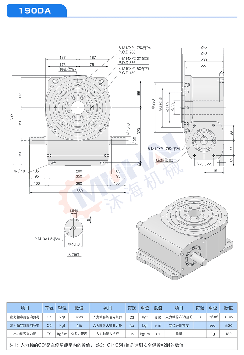 此系列機(jī)種之尺寸設(shè)計(jì)特性與平臺桌面型功能相似,于驅(qū)動運(yùn)轉(zhuǎn)上可承受超大軸向負(fù)載及垂直徑向壓力,在輸出端有一凸起固定盤面及大孔徑空心軸,可搭配設(shè)置動態(tài)、靜態(tài)自動化周邊設(shè)備,可將動力源之電、油、氣管路設(shè)置于空心孔內(nèi),此系列機(jī)種廣泛用于重負(fù)載、直結(jié)自動化設(shè)備之各類種機(jī)構(gòu)及產(chǎn)業(yè)機(jī)械等,作同步自動化間歇驅(qū)動。